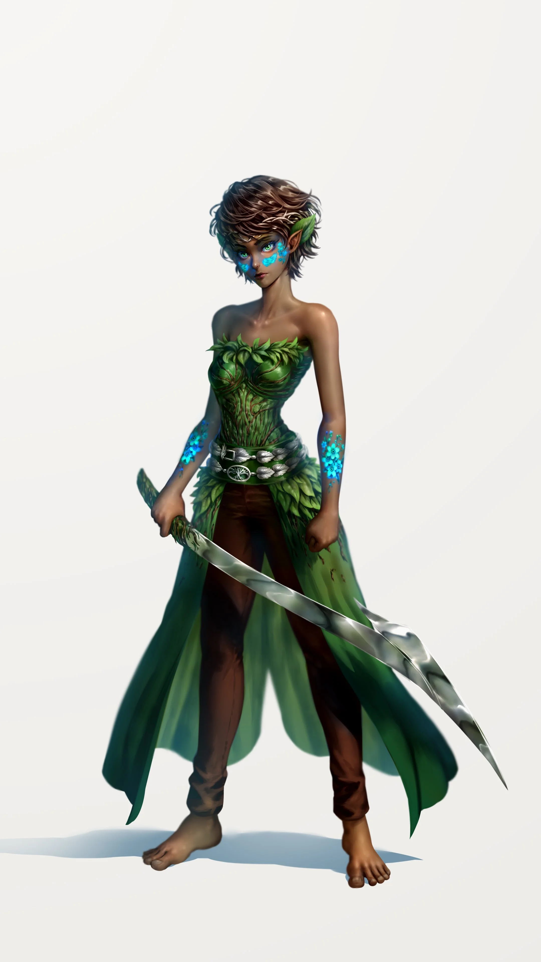 Our physical looks are dark flesh with plants growing here and there. I have plants growing on my head. Also I have grass growing in an unmentionable place, no details needed. Our tattoos that illuminate when we use magic are not ink. They are images of our souls. I have nightshade flowers and wings myself. The significance of our marks is that of our personality. Words could not describe us better.